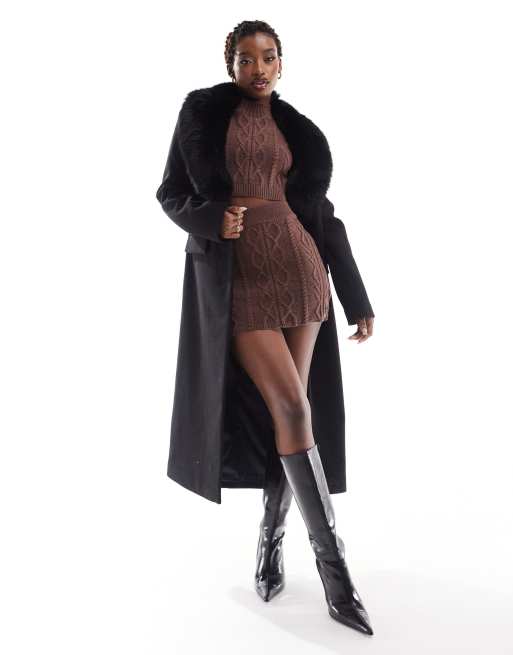 River Island - Elegante jas met kraag van imitatiebont in zwart
