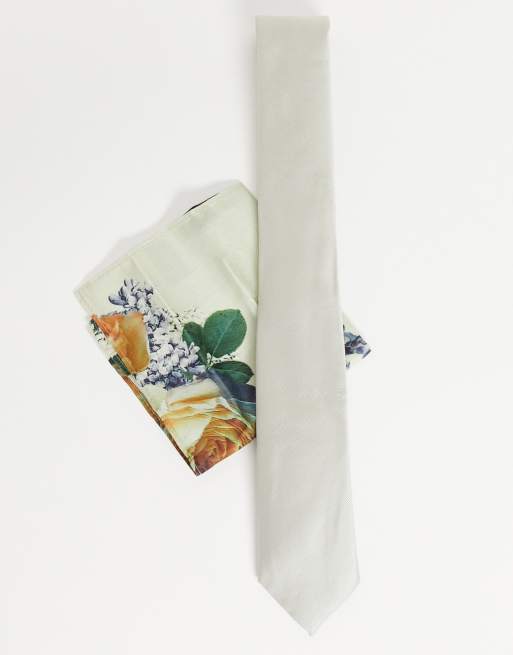 River Island - Gebloemde stropdas-set in kiezelkleur