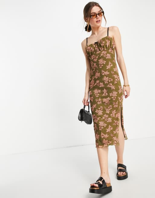 River Island - Midi jurk van mesh met bloemenprint in groen