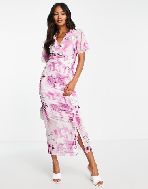 River Island - Midi jurk van mesh met ruches in paars