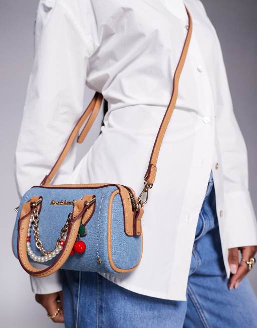 River Island - Mini bowlertas van denim in middenblauw