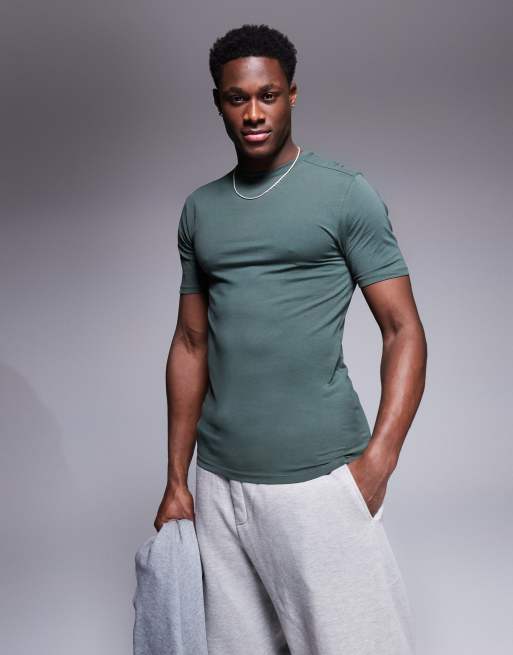 River Island - Muscle-fit T-shirt in donkerkaki
