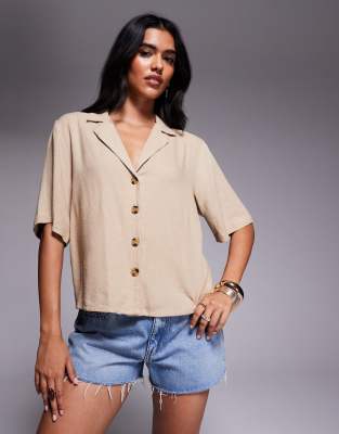 River Island - Overhemd met rechte pasvorm en linnenlook in beige