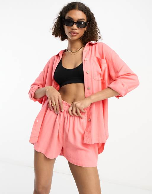 River Island - Oversized linnen overhemd in roze, deel van co-ord set