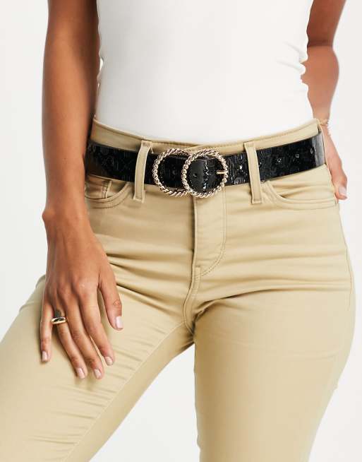 River Island - Riem met dubbele ring en reliëflogo in zwart