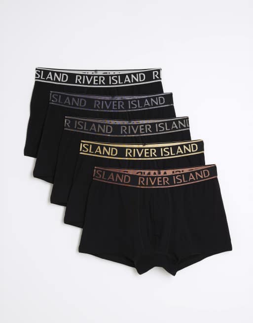 River Island - Set van 5 metallic boxershorts in zwart