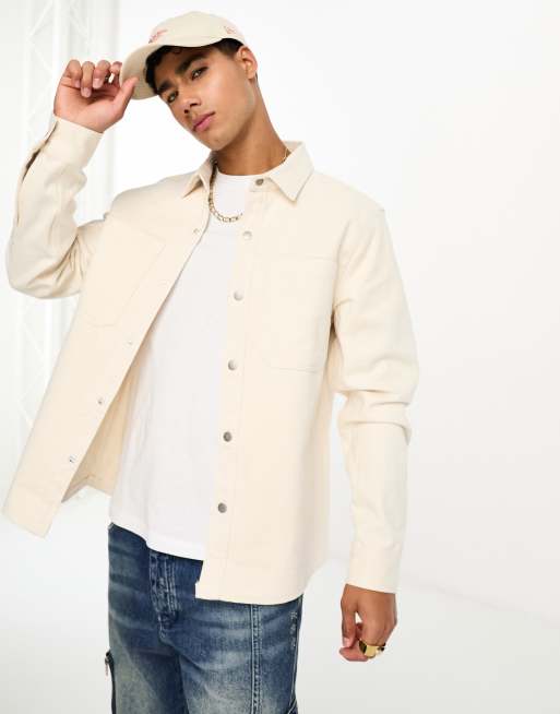 River Island - Shacket met zakdetail in ecru