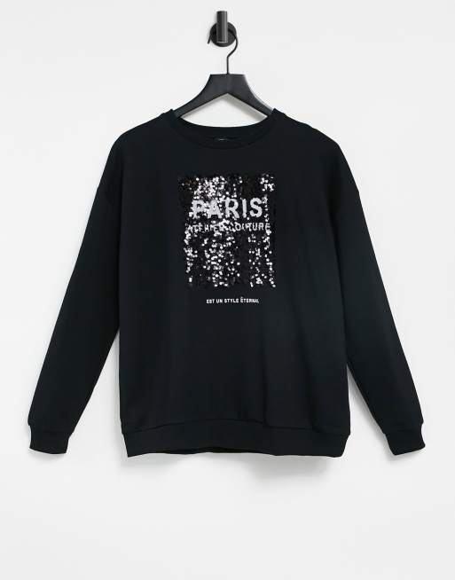 River Island - Sweatshirt met 'Paris'-slogan met lovertjes in zwart