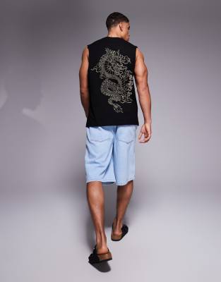 River Island - Tanktop met print van Japanse draak op de achterkant in zwart