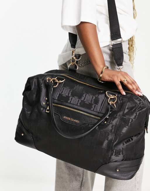 River Island - Weekendtas van jacquard met monogram in zwart