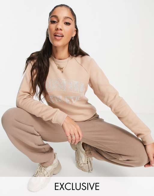 Russell Athletic - Glan - Sweatshirt met ronde hals in naturel