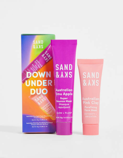 - 1 x Sand & Sky Australian Pink Clay Porefining Gezichtsmasker: 13 g1 x Sand & Sky Australian Emu Apple Super Bounce Masker: 10 g
