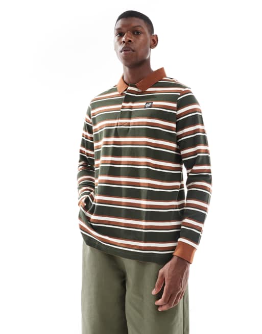 Santa Cruz - Losvallende gestreepte polo met lange mouwen in bruin en groen