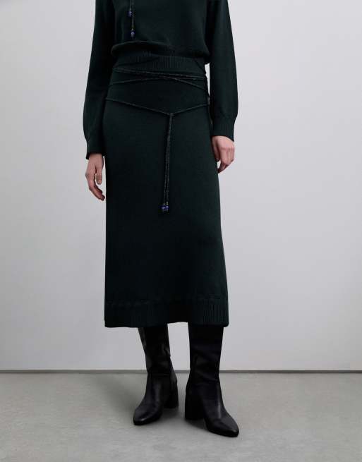 Scalpers - Gebreide rok met koord in donkergroen