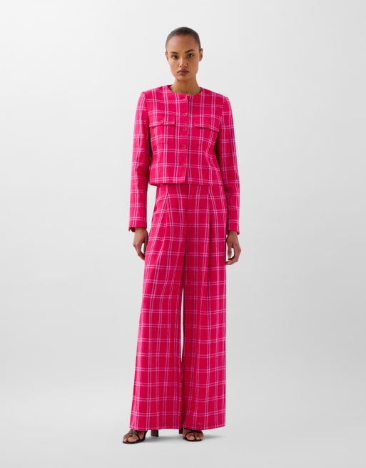 Scalpers - Geruite broek van linnenmix in rode ruiten
