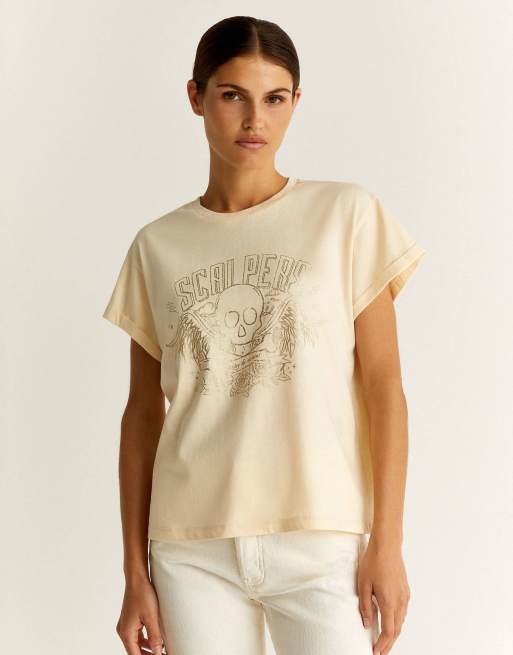 Scalpers - T-shirt met rock folieprint in naturel
