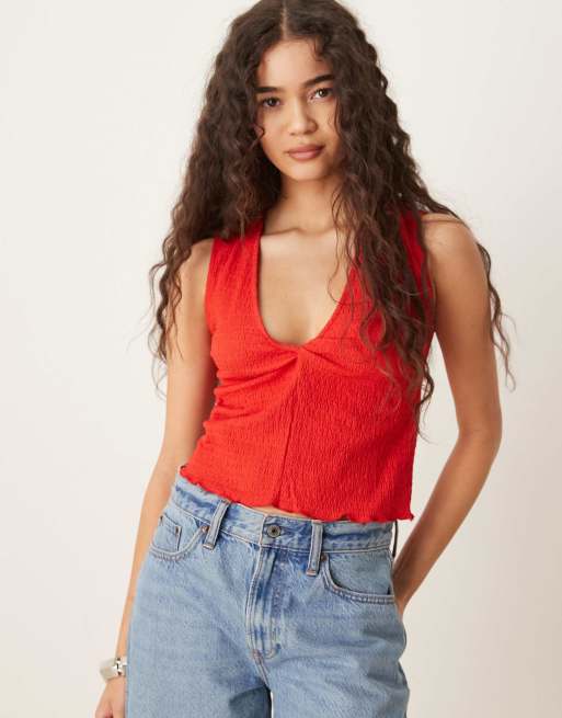Scalpers - T-shirt van kreukelstof met geknoopte borst in rood