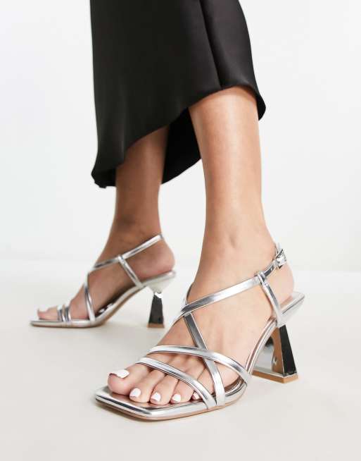 schuh - Exclusives - Scarlett - Sandalen met hak en smalle bandjes in zilver metallic