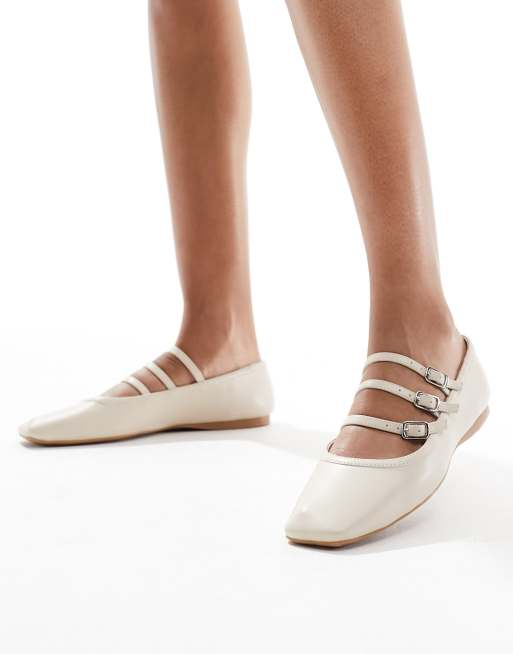 schuh - Lianna - Ballerina's met meerdere gespen in gebroken wit