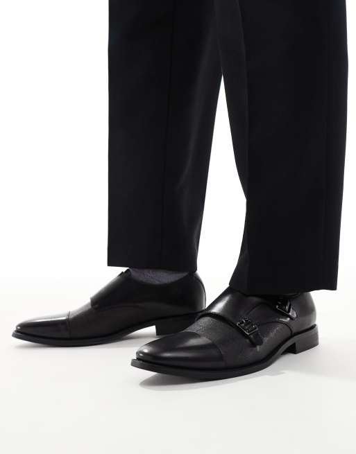 schuh - Rocky - Gespschoenen met dubbele bandjes in zwart leer