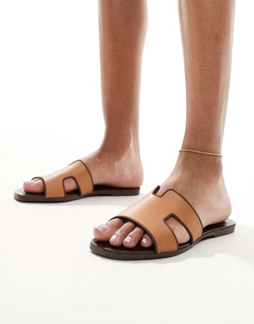 schuh - Tandra - Platte leren sandalen in bruin