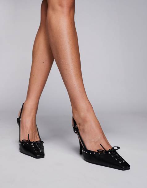 MEER KLEURENGlamorous - Slingback schoenen met hak en strik in zwart