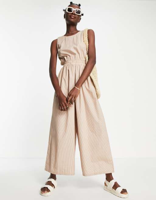 Selected Femme - Gestreepte katoenen jumpsuit met wijde pijpen - MULTI