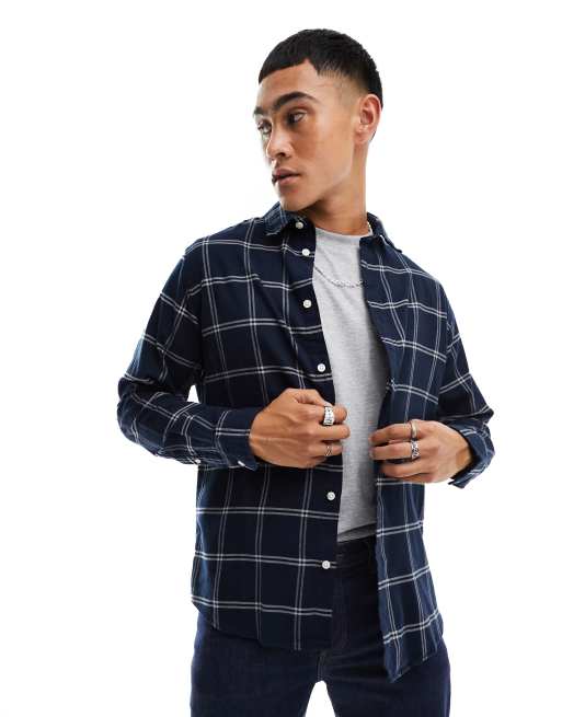 Selected - Geruit flanellen overhemd in marineblauw en wit