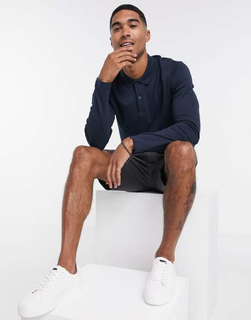 Selected Homme - Jersey polo van katoen met lange mouwen in marineblauw - NAVY