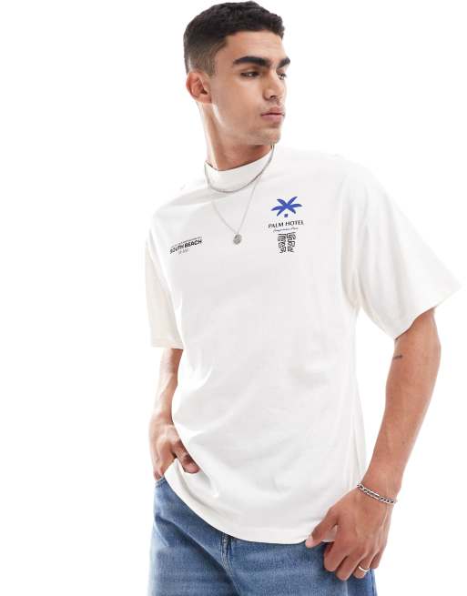 Selected Homme - Oversized T-shirt met South Beach-print in wit