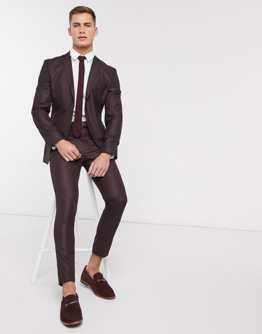 Selected Homme - Skinny-fit geruit kostuum met stretch in bordeauxrood