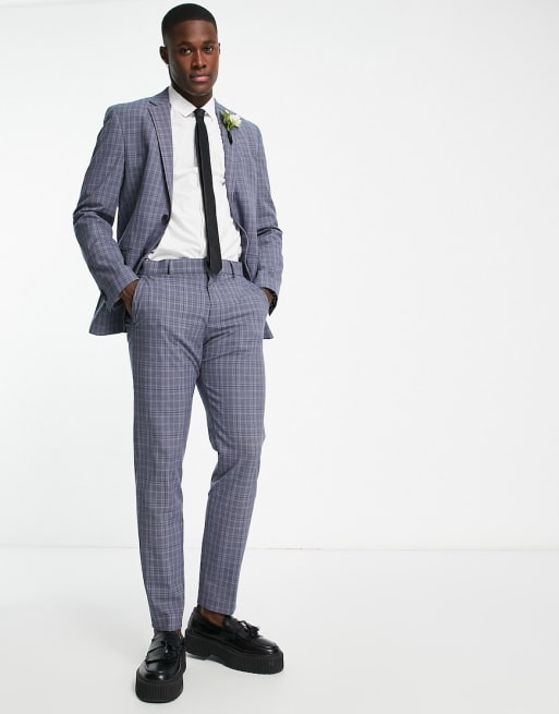 Selected Homme - Slim-fit pak in grijs met blauwe ruiten