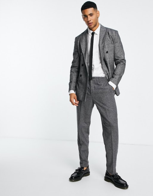 Selected Homme - Slim-fit pak in grijs met visgraatmotief