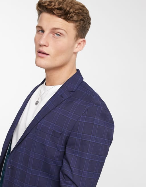 Selected Homme - Slim-fit pak in marineblauw met ruit