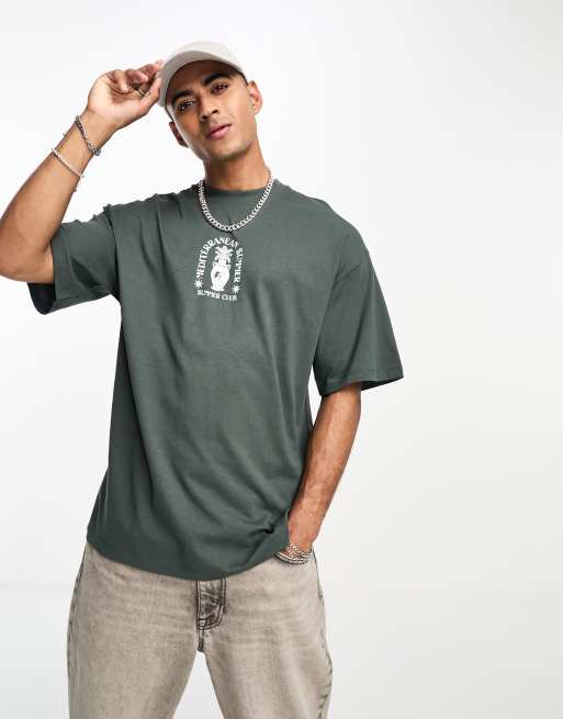 Selected Homme - Super oversized T-shirt met Mediterranean club-borstprint in grijs