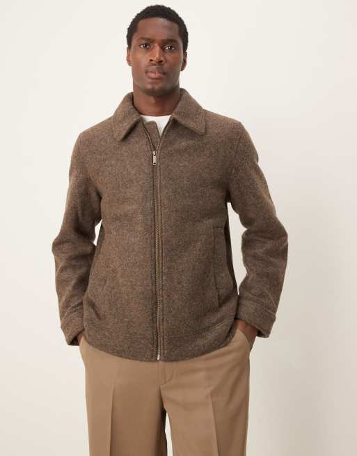 Selected - Jack van wolmix met rits en kraag in bruin