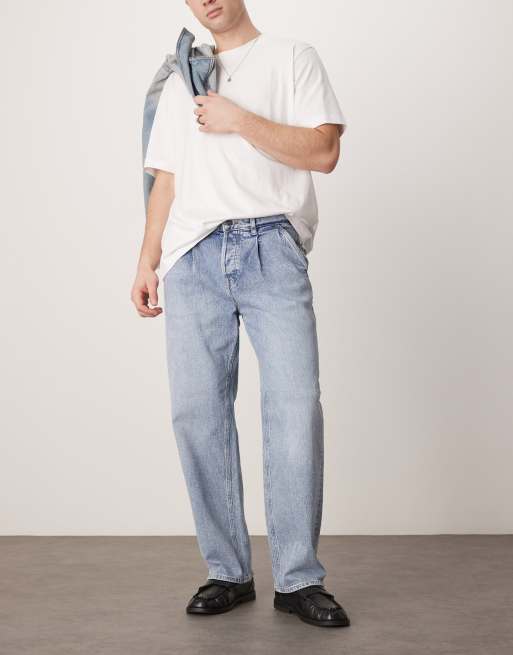 Selected - Kobe - Losvallende jeans met plooien in lichtblauw