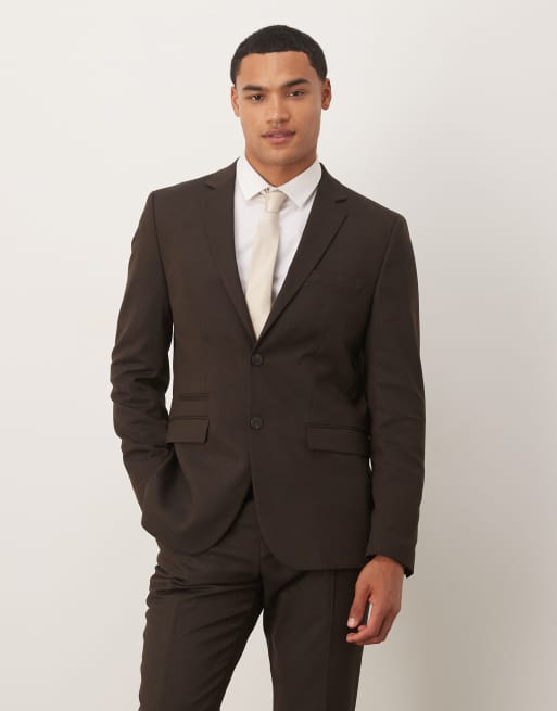 Selected - Slim-fit blazer van wolmix in bruin