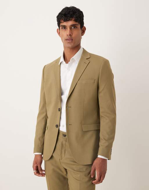 Selected - Slim-fit blazer van wolmix in groen
