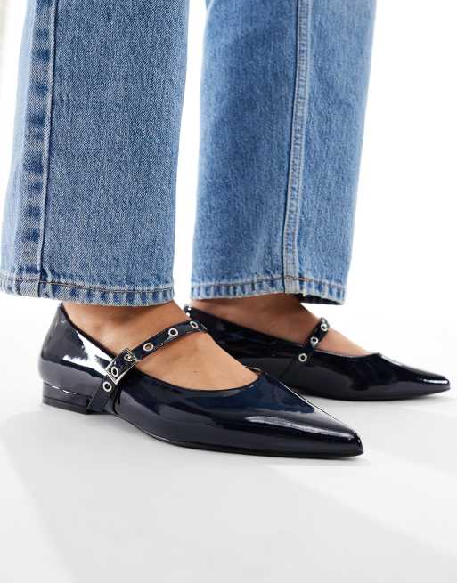 SEQWL - Jordan - Ballerina's met puntige neus en brede pasvorm in marineblauw lakleer