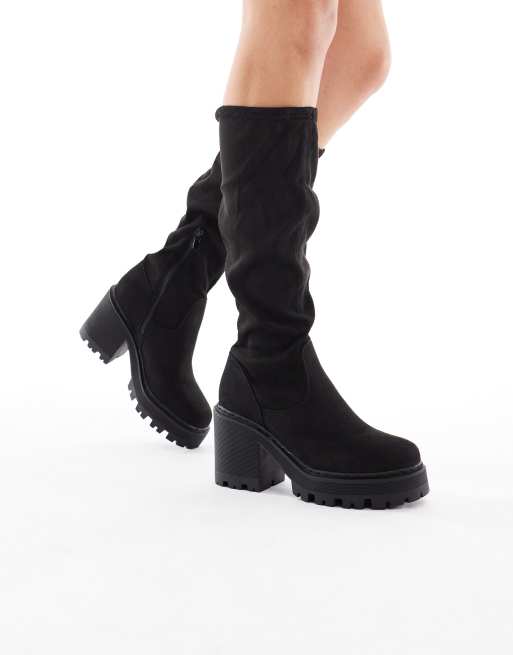 SEQWL Wide Fit - Fuzzy - Kniehoge laarzen met dikke zool in zwart
