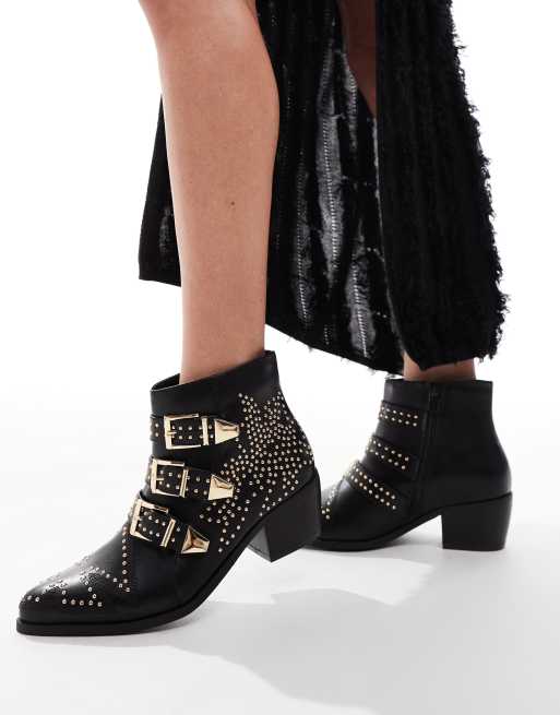 SEQWL - Cattle - Westernlaarzen met studs en gespen in zwart