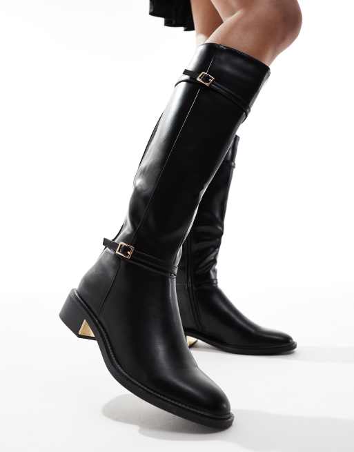 SEQWL - Kniehoge platte rijlaarzen in zwart