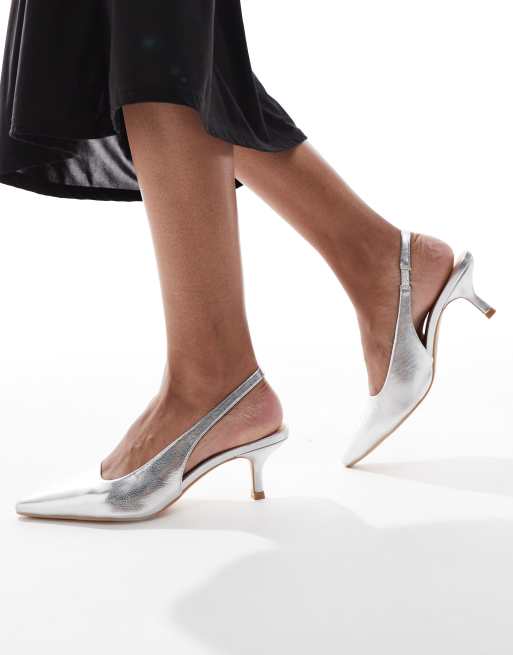 SEQWL - Maybach - Slingback kitten hakken in zilver folie