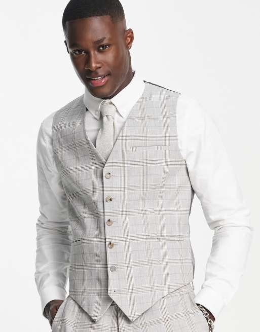 Shelby & Sons - Jessop - Slim-fit geruite gilet van linnen in grijs