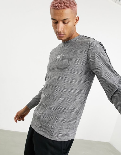 SikSilk - Sweatsuit set met bies in grijze pied-de-poule