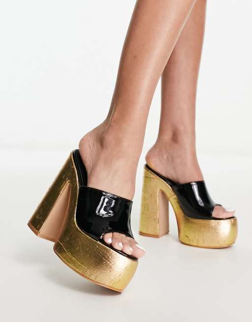 Simmi London - Aletta - Muiltjes met plateauzool van kurk in zwart lakleer