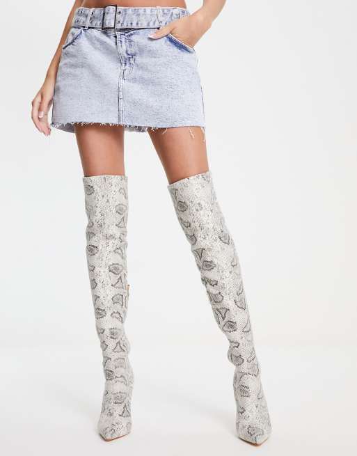 Simmi London - Duke - Over-de-knie-laarzen met stilettohak en slangenprint in gebroken wit
