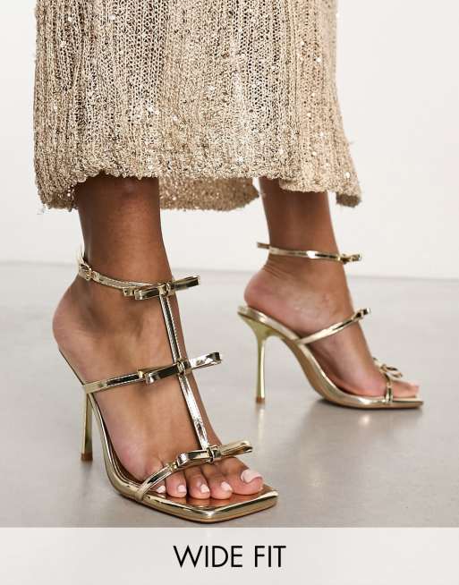 Simmi London - Exclusives - Riva - Sandalen met brede pasvorm, hoge hak en strikdetails in gespiegeld goud
