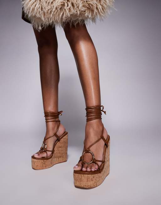 Simmi London - Jadey - Sandalen met brede pasvorm, bandjes en hoge sleehak in bruin